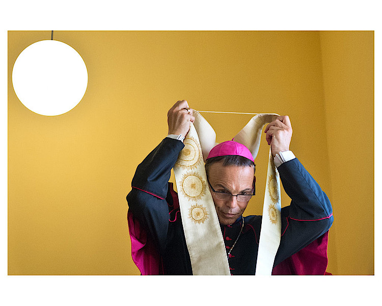 Erfurt, 26.11.13 – Boris Roesslers Foto zeigt den umstrittenen Bischof Franz-Peter Tebartz-van Elst in einem Augenblick, in dem er sich unbeobachtet fühlt. Boris Roessler erhält den mit 2.000 Euro dotierten Preis „Foto des Jahres 2013“ – gestiftet von der Sparkassen-Finanzgruppe Hessen-Thüringen – heute im Thüringer Landtag in Erfurt.