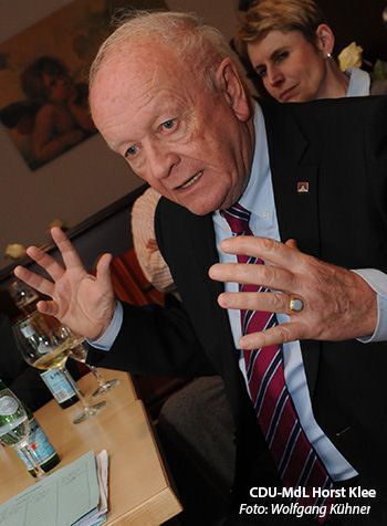 Wiesbaden, 15. März 2013. Bei seinem März-Stammtisch hatte der DJV-Ortsverband Wiesbaden den langjährigen CDU-Politiker Horst Klee im Restaurant Rossini zu Gast. Klee ist seit 1989 Kreisvorsitzender der Wiesbadener CDU und sitzt seit 1993 im Hessischen Landtag. Im Herbst 2013 kandidiert er dann bei den Landtagswahlen ein weiteres Mal für einen Sitz im hessischen Parlament.