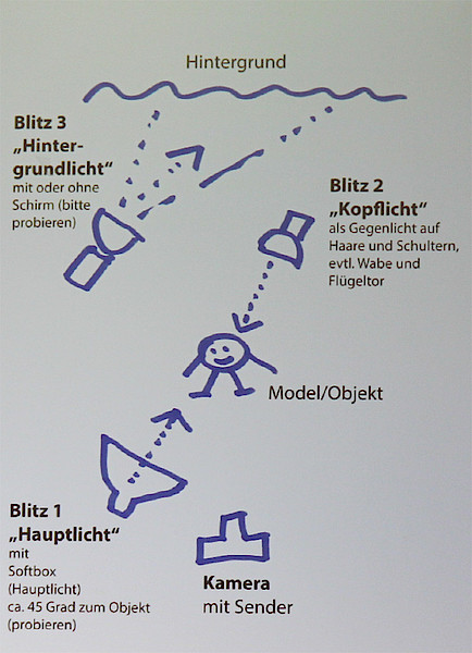 Diesmal gehörten zum Seminarinhalt die unterschiedlich eingesetzten Lichtquellen, mit denen bei Porträts gearbeitet wird sowie die Messung von Umgebungs- und Blitzlicht und das Ermitteln der Farbtemperatur.