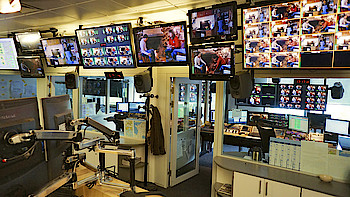 Der DJV-Europaausschuss konnte sich bei einer Führung durch das Haus ein Bild des Senders, vor allem der Studios, machen. Rund 400 Beschäftigte arbeiten an dem rund um die Uhr ausgestrahlten Qualitätsprogramm, das hauptsächlich in Frankreich und Deutschland in französischer und deutscher Sprache gesendet wird. Letztlich kann man ARTE europaweit und weltweit empfangen.