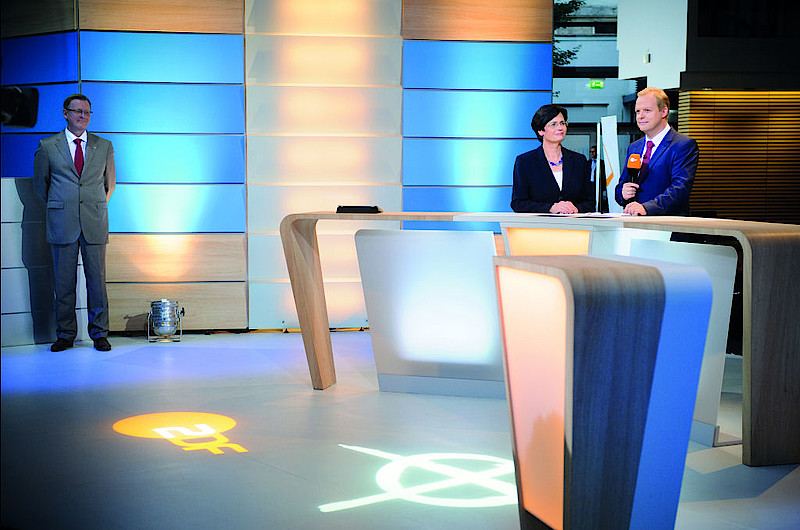 Das Bild zeigt Thüringens Ministerpräsidentin Christine Lieberknecht am Abend der Landtagswahl kurz vor einem Interview, während ihr Herausforderer Bodo Ramelow auf das Interview mit allen Spitzenkandidaten wartet. Marco Kneise erhält den mit 2.000 Euro dotierten Preis „Foto des Jahres 2014“ – gestiftet von der Sparkassen-Finanzgruppe Hessen-Thüringen – heute im Hessischen Landtag in Wiesbaden.