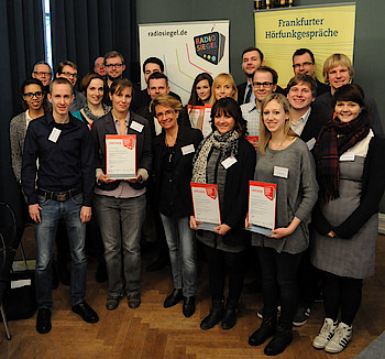 Etwa 30 Volontäre von verschiedenen Radiostationen nahmen gemeinsam mit ihren Ausbildern das Radiosiegel im Rahmen der Frankfurter Hörfunkgespräche in Empfang. Die jungen Radiomacher hatten ihre Sender selbst für das Siegel vorgeschlagen. Die Qualität der Ausbildung bewertete die Jury aus den renommierten Radioprofis Patrick Lynen, Nils Birschmann, Bernd-Peter Arnold, Wolfgang Sabisch und Christoph Flach.