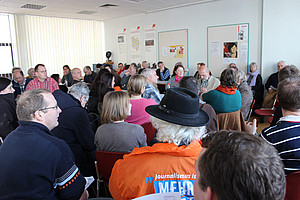 Im Gewerkschaftshaus waren schließlich über 100 Streikende zusammengekommen. Dort verlasen die Gewerkschaften ver:di und DJV eine gemeinsame Resolution, die der Verhandlungskommission am morgigen achten Verhandlungstag vorgelegt werden soll. Sie besagt, dass die Unterzeichnenden daran erinnern, den „inakzeptablen Forderungen von Verlegerseite“ nicht weiter entgegenzukommen und dass „jeder Tarifabschluss unter Vorbehalt der Zustimmung der Gewerkschaftsmitglieder steht“.