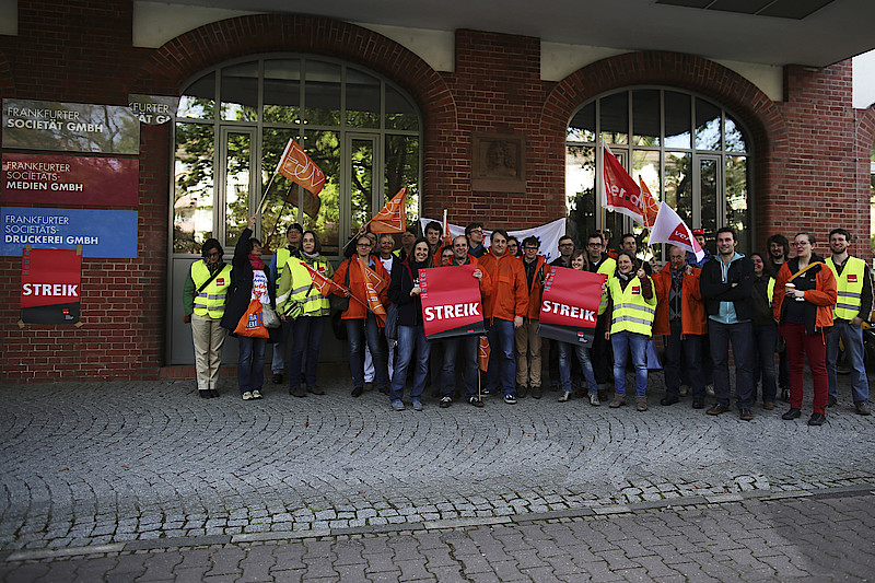 Die Redakteure der PDF wurden bei ihrem Streik unterstützt von Kolleginnen und Kollegen der Frankfurter Neuen Presse sowie dem Betriebsrat der Frankfurter Rundschau.