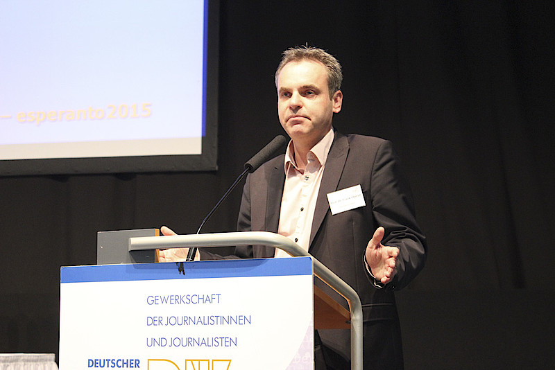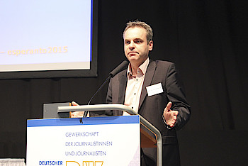 Gast am ersten Tag war Anthony Bellanger, Secretary IJF, der seit September im Amt ist. Er vertritt etwa 600.000 Mitglieder aus 139 Ländern. Er erinnerte nachdrücklich an die 700 Journalistinnen und Journalisten, die zwischen 2006 und 2014 getötet wurden. Es gebe keine Pressefreiheit, solange dies geschehe. Als vier der gefährlichsten Länder nannte er Mexico, die Ukraine, die Philippinen und Jemen (seit Januar wurden dort zehn Journalisten getötet). In Paris wird heute der „Internationale Tag gegen Straflosigkeit für Verbrechen an Journalisten“ begangen. Dort werden im UNESCO-Bericht „World Trends in Freedom of Expression and Media Development – Special Digital Focus 2015" die Zahlen veröffentlicht.