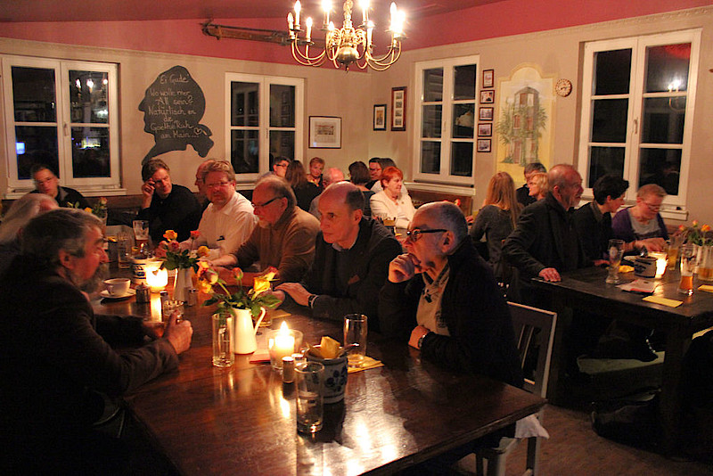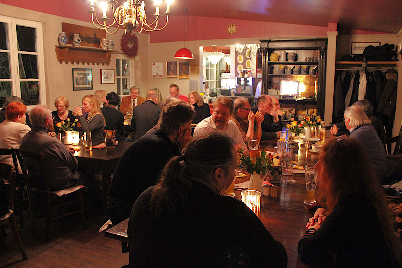 Das traditionsreiche, aber dennoch nicht hessische, Nationalgericht, Grünkohl und Pinkel, wurde vom ehemaligen Orstvorsitzenden Hans Heinrich Matthiesen, einem waschechten Norddeutschen, einst eingeführt und von Umberto Biagioni, dem derzeitigen Ortsvorsitzenden von Frankfurt, wieder zum Leben erweckt. Die meisten Mitglieder kamen auch vom Ortsverband Frankfurt, um mit alten Bekannten, aber auch dem ein oder anderen Neuzugang über Aktuelles zu diskutieren oder die gute Gelegenheit zu nutzen, Kolleginnen und Kollegen wiederzutreffen. Landesverbandsvorsitzender Hans U. Heuser gab zum Einstieg einen umfassenden Überblick über die Medienlage Hessens, woraufhin genügend Diskussionsstoff zur Verfügung stand.