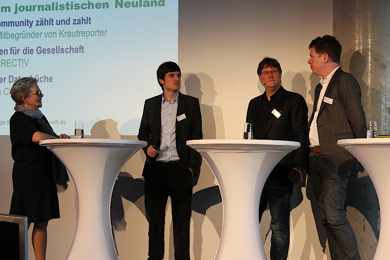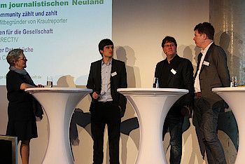 In der anschließenden Diskussion, die von Christina Elmer (Spiegel Online) moderiert wurde, waren sich Medien-Trainer Volker Matthies, RTL-2-Nachrichtenchef Matthias Walter, Leif Kramp, Sylke Gruhnwald und Marco Maas einig, dass die Beteiligung des Publikums und das Auflösen von Beharrungskräften ebenso die Zukunft des Journalismus ausmachten wie flache Hierarchien sowie Freiräume für Kreativität und Arbeitszeit. Bei strukturellen Veränderungen sollten die Unternehmen „vom Netz aus denken“, das heißt, das Internet nicht nur als Ergänzung sondern als Ausgangspunkt zu betrachten und mobile Endgeräte in den Mittelpunkt des Sendens und Empfangens zu stellen.