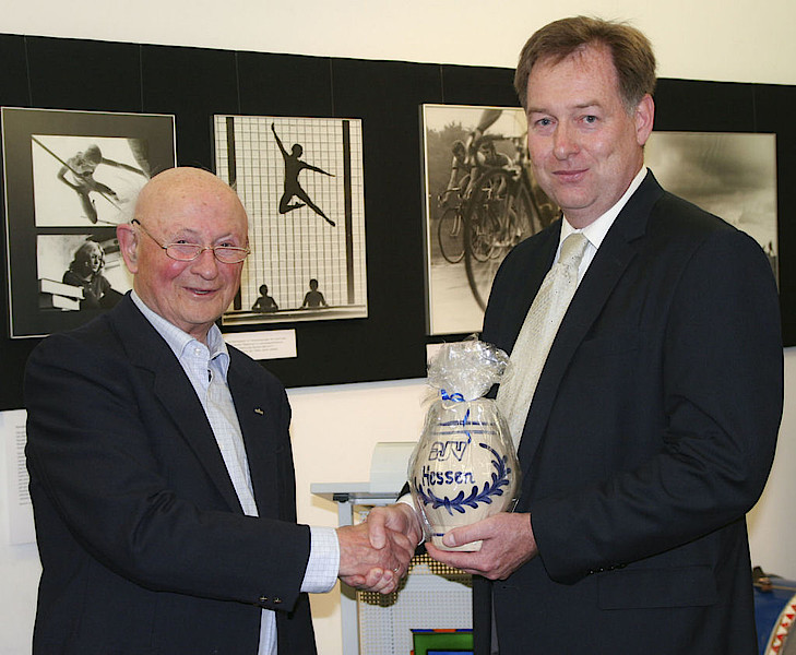Axel Häsler, Vorstandsmitglied des Deutschen Journalistenverbandes Hessen und Vorsitzender des Bezirks Hanau /Main-Kinzig, würdigte Gustav Hildebrand für seine langjährige Mitgliedschaft im DJV Hessen. Im nächsten Jahr wird Hildebrand dem Verband 60 Jahre angehören. Sein umfangreiches Archiv gehöre inzwischen zum Bestand der Deutschen Fotothek in Dresden und dokumentiere, wie sich Hildebrand mit Offenherzigkeit und liebevoller Genauigkeit für alles Schöne und Skurrile einen Namen gemacht habe. Die Bildreportage sei sein Ziel gewesen, ergänzt mit lebendigen Texten. Brillant beschrieben und recherchiert sei das ästhetische Feingefühl immer präsent gewesen.