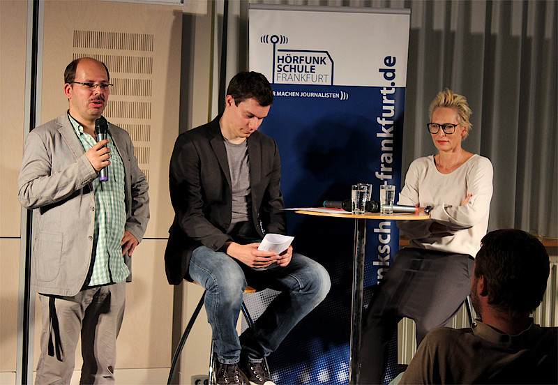 Bärbel Schäfer ist seit Anfang der 90er Jahre im Geschäft, seit sie ein Praktikum beim WDR machte und ARD sowie Deutsche Welle gleich dranhängte. Sie weiß, worum es geht, wenn nach der Zukunft des Journalismus gefragt wird. Auch bei den öffentlich-rechtlichen Rundfunkanstalten, Schäfer hat seit 2009 ihr eigenes Talk-Format bei hr3, wird gespart und es werden hauptsächlich Freie beschäftigt. „Ja, man kann noch Journalist werden,“ sagte sie bestimmt, „aber man muss es aushalten können, dass man nicht längerfristig planen kann.“