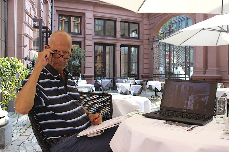 Es blieb nicht bei einem Blick. Es folgten weitere, aus denen sich fotografische Reihen ergaben, die sich ausdehnten. Nicht nur im Raum, sondern auch in der Zeit. Die Tageszeiten kamen hinzu und es entstanden Serien, die Frankfurt bei Tag und bei Nacht zeigten – Serien, die für die Betrachtenden immer wieder neue Details sichtbar machen und neue Gefühle hervorrufen. Es sind keine technisch perfekt geschönte Aufnahmen. Vielmehr geben sie, in Ergänzung zum Motiv, den Moment wieder, in dem und von wo die Aufnahme entstand. Regentropfen, Spiegelungen und beschlagene Scheiben gehören deshalb ebenso dazu wie Verwacklungen. Der Fotograf ist mit bescheidenem Equipment unterwegs. Also auch ohne Stativ. „Zu viel Technik, schreckt die Ansprechpartnerinnen und -partner ab,“ erklärt er die wirksamere Minimalausstattung.