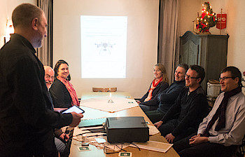 Anleitungen und Tipps zum Umgang mit dem Sozialen Netzwerk „Facebook“ gab die stellvertretende Vorsitzende Angela Heinemann beim ersten Stammtisch des Ortsverbandes Marburg nach der Sommerpause ihren Kolleginnen und Kollegen. Im Team hatten Vorsitzender Stefan Dietrich und sie entschieden, die Treffen ab sofort unter ein spezielles Thema zu stellen, um den regelmäßigen Zusammenkünften einen Mehrwert zu verleihen. Über Risiken des Einsatzes von Fotodrohnen und die zusammenhängende Dynamik im Fotorecht referierte der Freie Journalist Rolf Skrypzak bei der Folgeveranstaltung. Nicht immer endet der Einsatz von Fotodrohnen so folgenschwer wie bei einem Konzert des Schlagersängers Enrique Iglesias in den USA, doch Vorsicht ist allemal geboten - auch in rechtlicher Hinsicht. Die Geräte sind günstiger geworden, das Angebot rund um Drohnenaufnahmen steigt. Wurden Drohnen zunächst hauptsächlich zu Beobachtungs- und Dokumentationszwecken bei Haialarm oder Buschbränden eingesetzt, haben heute viele Werbesports und Promotionsvideos ihren Ursprung in der Drohnenfotografie. - Ein problembehaftetes Feld jedoch, denn was erlaubt ist und was gefährlich, ist den oft unerfahrenen Drohnennutzern häufig unbekannt. Der Drohnenführerschein könnte am Ende dieser Diskussion stehen, auf die abschließende Regelung wird noch gewartet. Klar dürfte aber sein: Ein Utensil für den fotojournalistischen Alltagsgebrauch wird die Fotodrohne nicht.