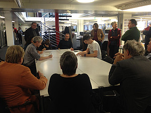 Rund 20 Vertreterinnen und Vertreter aus Deutschland, Österreich und der Schweiz haben sich am 11. und 12. Februar in Bern zum Tarifgipfel der deutschsprachigen Gewerkschaften und Verbände von Text- und Bild-Journalistinnen und -Journalisten getroffen. Dabei haben sie sich über die Arbeitssituation und die Vertragsbedingungen in den Medien ausgetauscht. Sie diskutierten Stärken und Schwächen des Urheberrechts, der Aus- und Weiterbildungsmöglichkeiten und der Mitsprache am Arbeitsplatz in ihren Ländern. Zum Tarifgipfel haben der Journalistenverband impressum und die Mediengewerkschaft syndicom geladen. Teilgenommen haben Vertreterinnen und Vertreter von: