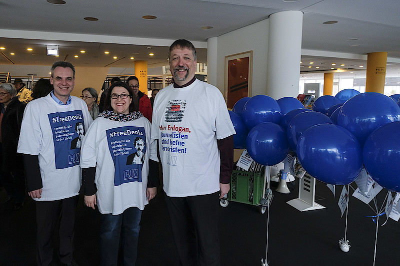 Für das Jahr 2017 schreibt sich der Bayerische Journalisten-Verband den Kampf gegen Dumping-Honorare für freie Journalistinnen und Journalisten und drohenden Arbeitsplatzverlust in den Verlagshäusern auf die Fahne. Als Zeichen ihrer Solidarität mit den 150 in der Türkei inhaftierten Journalistinnen und Journalisten ließen in der Mittagspause die rund 100 Teilnehmer symbolisch 150 Luftballons mit der Botschaft „Herr Erdogan, Journalisten sind keine Terroristen!" aufsteigen.