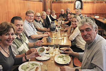 Der Frühsommer-Event verbindet Netzwerken unter Kolleginnen und Kollegen mit der Gelegenheit, das typisch-regionale Gericht Frankfurts, die Grüne Soße, mit einem Schoppen (Apfelwein) in aufgeschlossener Atmosphäre zu genießen. An die 20 Teilnehmende versammelten sich denn auch in dem sehenswerten und alteingesessenen Lokal in Sachsenhausen.