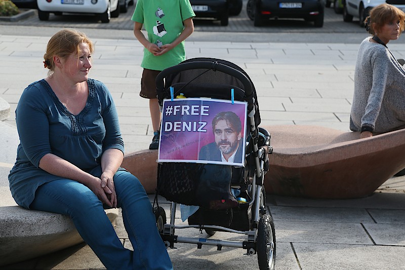 Yücel ist in Flörsheim am Main geboren. Direkt gegenüber der Stadthalle, hat in der Stadt seine Kindheit und seine Schulzeit verbracht. Bis zu seiner Verhaftung am 14. Februar hatte er in seiner Geburtsstadt kaum Aufmerksamkeit. Das hat sich jetzt geändert. Das Stadtparlament hat einstimmig eine Resolution für die Freilassung des Journalisten beschlossen. Bürgermeister Michael Antenbrink (SPD) organisiert jeden Monat die Mahnwache vor der Stadthalle, hält immer eine kurze Rede, bevor Journalisten der in der Rhein-Main-Region erscheinenden Zeitungen zu Wort kommen oder, wie im September, die Büchnerbühne aus Gernsheim auftritt und Gedichte zur Freiheit rezitiert.