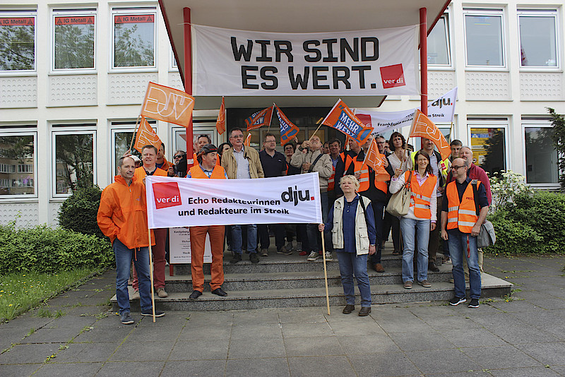 Bei der anschließenden Versammlung im Gewerkschaftshaus kritisierte Achim Wolff, Geschäftsführer des DJV Hessen, die „grottenschlechten Angebote“ der Verleger. „Ich hoffe“, sagte er, „dass das Trauerspiel mit den morgigen Verhandlungen ein Ende nimmt und die Gewerkschaften mit den Verlegern zu einem Ergebnis kommen.“