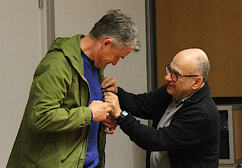 Im Anschluss porträtierte Wolfgang Minich die Arbeitsweisen des Bundespresseamtes und der Bundespressekonferenz in einem Kurzvortrag.