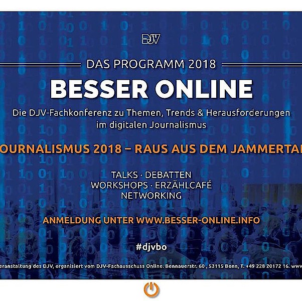 An der DJV-Tagung Besser Online nahmen rund 170 Journalistinnen und Journalisten aus ganz Deutschland teil. Veranstaltet wird die Digitalkonferenz vom DJV-Fachausschuss Online. zoe