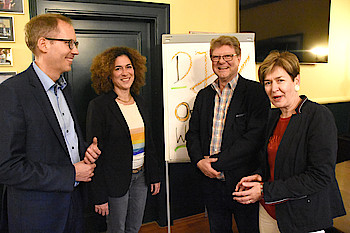 Fast zwei Stunden nehmen sich der Staatsminister und seine Mitarbeiterin Zeit, um den Mitgliedern des DJV Hessen in entspannter Runde einen kleinen Blick hinter die Kulissen zu geben. Und da Ortsverbandsvorsitzende Sylvia Kuck und Kai Klose das Treffen als Hintergrundgespräch verabredet haben, bleiben auch einige Informationen dort. Im Hintergrund. Heike Parakenings