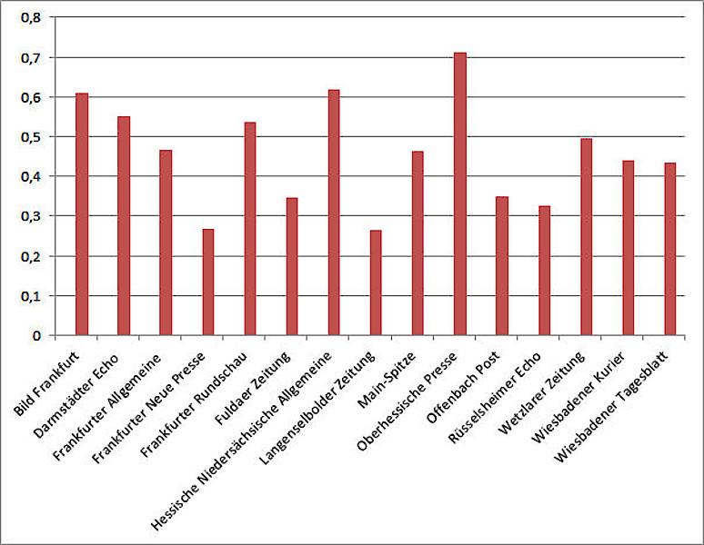 Seit vielen Jahren führt der Deutsche Journalisten-Verband das Projekt "Fotografen haben Namen" mit der Unterstützung der einzelnen Landesverbände durch. Nun liegt das Ergebnis vor. Der DJV Hessen hat 15 Tageszeitungen ausgewertet und übersichtlich in einer Grafik sowie in einer Tabelle dargestellt.