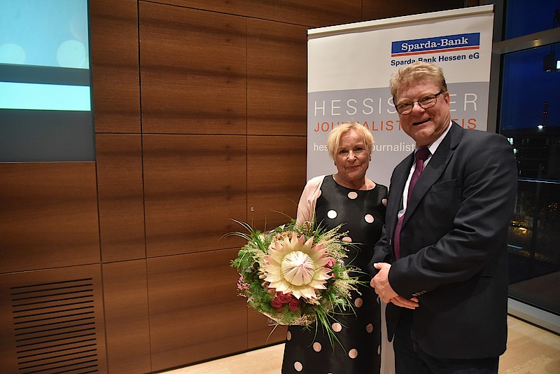 Sie reiht sich damit ein zwischen Kollegen wie Werner D‘Inka, Helmut Reitze, Helmut Markwort oder Dieter Kürten. Am 24.9.2019 ist die mit 3000 Euro dotierte Auszeichnung in Frankfurt verliehen worden. Zusammen mit vier weiteren Preisen für herausragende journalistische Leistungen im Land, die der DJV Hessen und die Sparda-Bank Hessen ausgelobt haben.