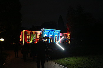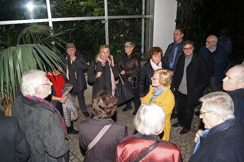 Die OV-Vorsitzende führte die Gruppe zunächst in die Tropicarien des Palmengarten zu außergewöhnlichen Dschungelpflanzen und den tropischen Gewächsen, die weihnachtliche Düfte und Gewürze bestimmen, von Ananas bis Zimt. Der Weg zur strahlend erleuchteten Villa Leonhardi, führte quer durch den illuminierten Garten und direkt zum heißen Apfelwein. Dort erwartete die Gruppe bereits die Leiterin des integrativen Gastronomie-Projekts "Kombinat", um die Journalisten/Innen zu begrüßen und das besondere Konzept zu erläutern. Danach wurde es nicht nur gemütlich, sondern auch informativ und deutlich: Der persönliche Austausch ist auch in Zeiten der Sozialen Medien wichtig und gewünscht.