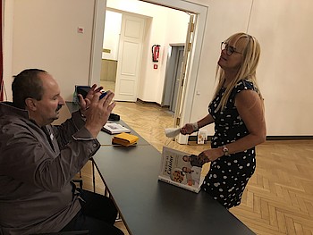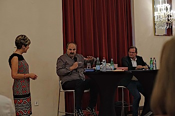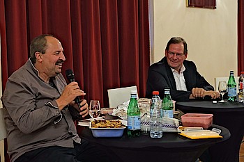 Dr. Gabriela Blumschein, Schatzmeisterin des DJV-Hessen in angeregter Unterhaltung mit dem Koch und Autor Johan Lafer