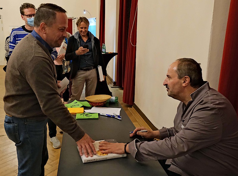 Lange Schlange beim Signieren von „Medical Cuisine“ (vorn: Blickpunkt-Autor Andreas Lang)