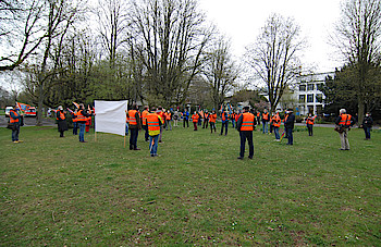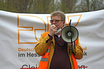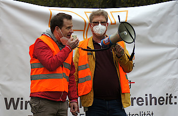 Wenige Minuten vor den angemeldeten Beginn der Demonstration hatte die Frankfurter Ortsgruppe der Querdenker die Veranstaltung abgesagt. Einzelne Gruppierungen waren im Lauf des Nachmittags dann doch auf dem Rebstockgelände zusammengekommen und hatten unter weitgehender Einhaltung der Auflagen eine neue spontane Demonstration angemeldet. Im Gegensatz zu der Kundgebung Ende März in Kassel blieb diese von der Resonanz her überschaubar und friedlich. Andreas Lang
