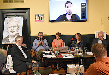 Frisch und heil aus der Ukraine zurückgekehrt und der Diskussion zugeschaltet, berichtete ARD-Korrespondent Oliver Mayer von seinen Erlebnissen. Einflussnahme auf seine Berichterstattung habe er nicht erlebt. Meist waren er und sein Team auf eigene Faust unterwegs. „Es ist nicht leicht, an verlässliche Informationen wie beispielsweise korrekte Opferzahlen auf beiden Seiten zu gelangen.“ Im jährlichen Ranking der Pressefreiheit von Reporter ohne Grenzen ist die Ukraine um neun Positionen auf Rang 106 von 180 abgerutscht. Extra anlässlich der Diskussion hatte sich Mayer bei seinen ukrainischen Kolleginnen und Kollegen umgehört. „Viele haben sehr gute Erfahrungen mit Pressefreiheit gemacht.“ Sie hätten auch vor dem Krieg relativ frei berichten können. In der aktuellen Phase gibt es ein Übereinkommen mit der Regierung, welche Art von Informationen nicht veröffentlicht werden, wie militärische Details, Todeszahlen und dergleichen. „Alle Journalisten, mit denen ich gesprochen habe, können das in der jetzigen Situation durchaus verstehen und finden es gut, dass man sich an gemeinsame Absprachen hält – auch um keine Informationen in russische Hände zu tragen.“