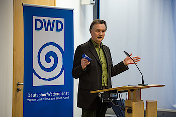 Uwe Kirsche, DWD-Pressesprecher, begrüßt die Gäste der Vernissage