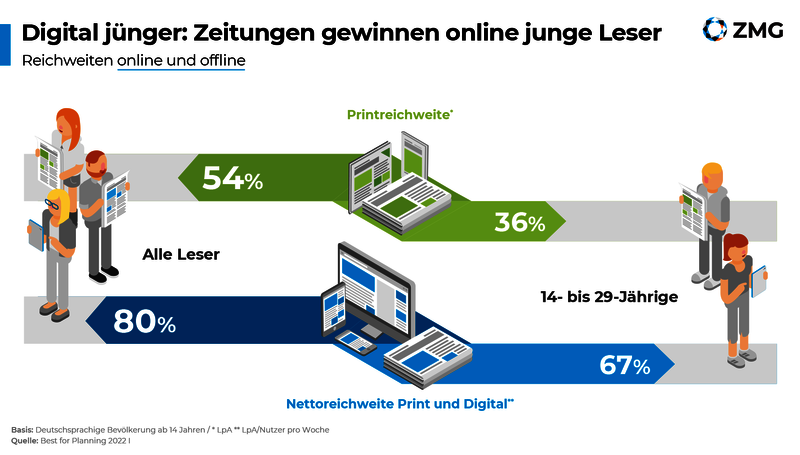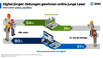 Mit ihren vielfältigen Digital-, Audio- und App-Angeboten sind nach Ansicht von 80 % der Nutzer die Zeitungen modern und zeitgemäß aufgestellt. Diese Zusatzangebote sind auch ein Türöffner zu Zielgruppen, die mit dem Printtitel bislang nicht erreicht wurden. So sind 46 % der bisherigen Nichtleser durchaus an Apps mit aktuellen Nachrichten interessiert, 43 % möchten die Webangebote der Zeitungen nutzen, rund ein Drittel ist aufgeschlossen für Social Media-, Video- oder Podcast-Angebote.