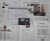 Darmstadt, 08.02.2015 – Direkt nach dem Anschlag auf die Redaktion von Charlie Hebdo in Paris berichtet das Darmstädter Echo und bekundet seine Anteilnahme mit einer Traueranzeige.