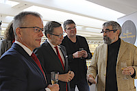 Wiesbaden/Frankfurt, 5. März 2018 - Der Vorstandsvorsitzende der Frankfurter Sparkasse, Robert Restani, und der Vorstandsvorsitzende des DJV Hessen, Knud Zilian, eröffneten die Ausstellung PresseFoto Hessen-Thüringen 2017 im Kundenzentrum der Frankfurter Sparkasse in Frankfurt am Main.