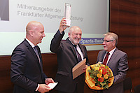 Frankfurt/Wiesbaden, 12. Oktober 2016 – Im Rahmen des Hessischen Journalistenpreises 2016 vergaben zum 11. Mal der DJV Hessen und die Sparda-Bank Hessen sechs Auszeichnungen. Werner D’Inka erhielt den „Preis für das bisherige Lebenswerk“.
